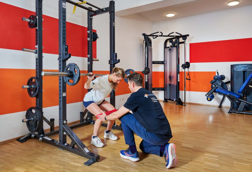 Nach Ihrer Physiotherapie steht Ihnen unser voll ausgestatteter Trainingsraum zur freien Verfügung – inklusive Duschen für Ihren Komfort.